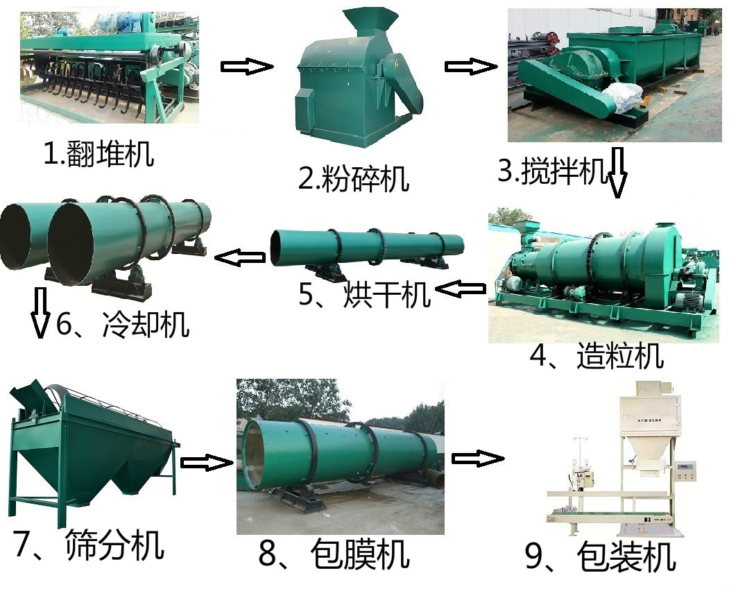 想要了解一套有机肥设备多少钱?首先从工艺上要了解需要哪些设备?成套的有机肥设备根据生产工艺分为粉状有机肥设备和颗粒有机肥设备: 粉状有机肥设备包括:翻抛机、铲车料仓、粉碎机、筛分机、自动包装机、