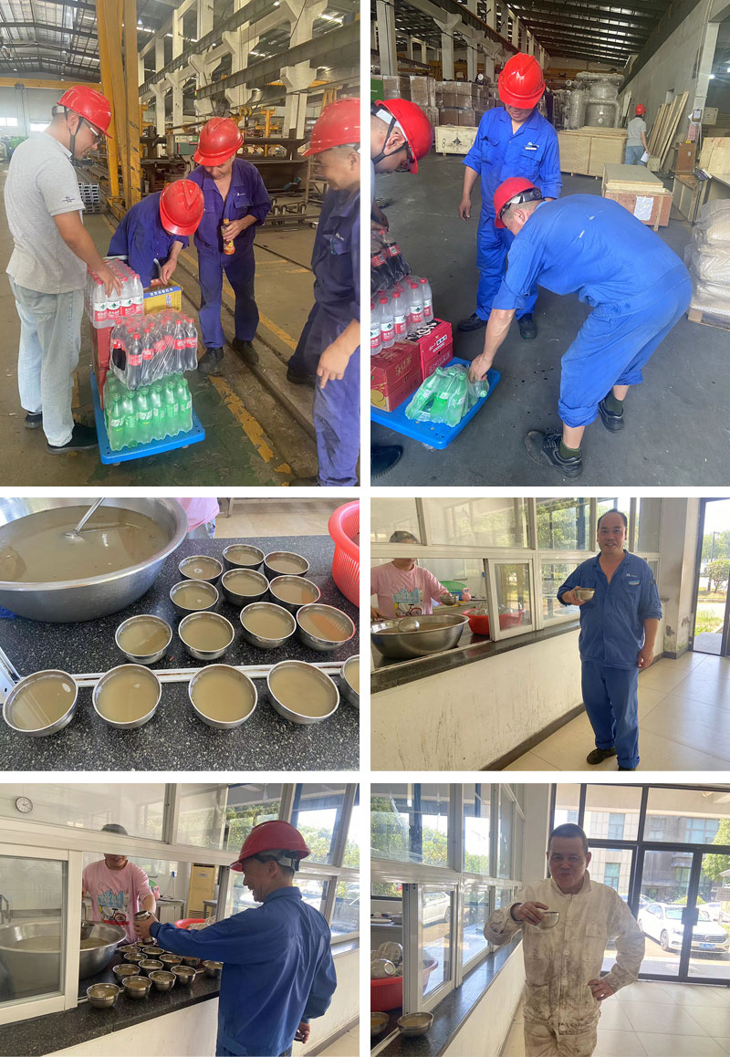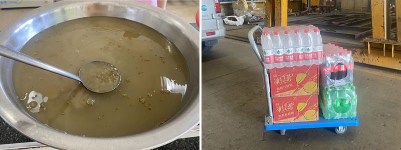 公司食堂每日精心熬制绿豆汤,供车间员工饮用,一碗绿豆汤,看似普通,却在这炎炎夏日为大家带来了身体上的清凉,更让一线的同事们在紧张繁忙的工作中获得了片刻的放松与休憩。