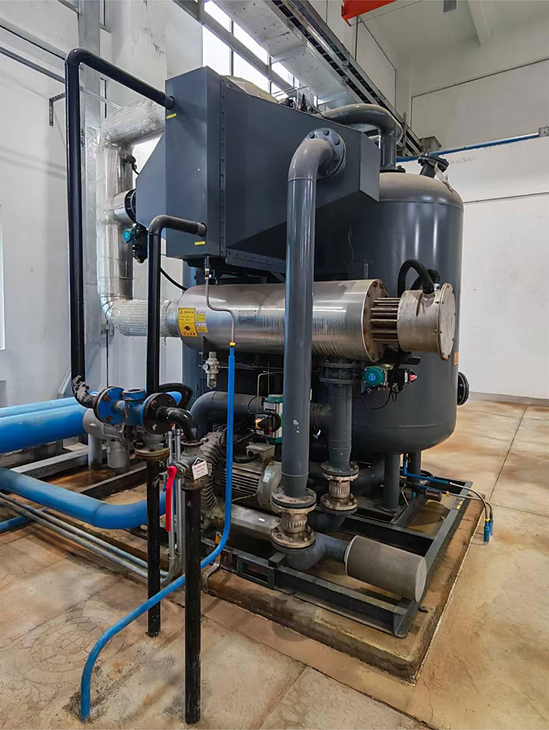 另外本工程还配置了5台离心式空压机和2台无油螺杆式空压机,同步配置我司7台压缩热再生吸附式干燥机和2台空气冷却器,供仪用、检修及厂内输灰输使用压缩空气。相比之前传统的微热、无热吸干机以及组合式干燥机设备,压缩热再生吸附式干燥机能效更优、运行成本更低,符合国家倡导的节能减排政策。