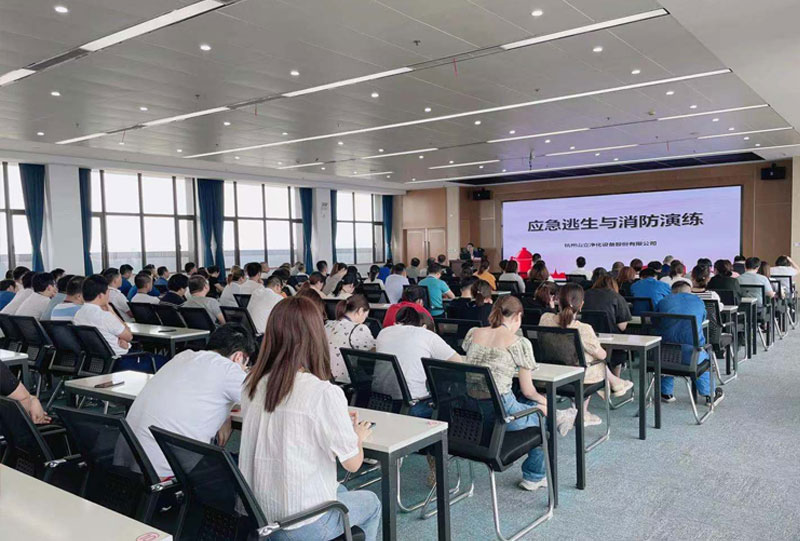 为了贯彻落实国家“预防为主,防消结合”的消防工作方针,确保人员掌握了解基本消防知识、消防器材使用方法及自身消防工作职责,加强公司广大在职人员消防安全意识和火灾应急处理能力,保障消防事故发生时大家临危不乱,最大限度减轻事故带来的伤害和损失,2021年7月13日,杭州yl23411永利官网登录净化设备股份有限公司组织了一次全员消防知识培训及演练活动。演练紧张、有序进行,并取得圆满成功。