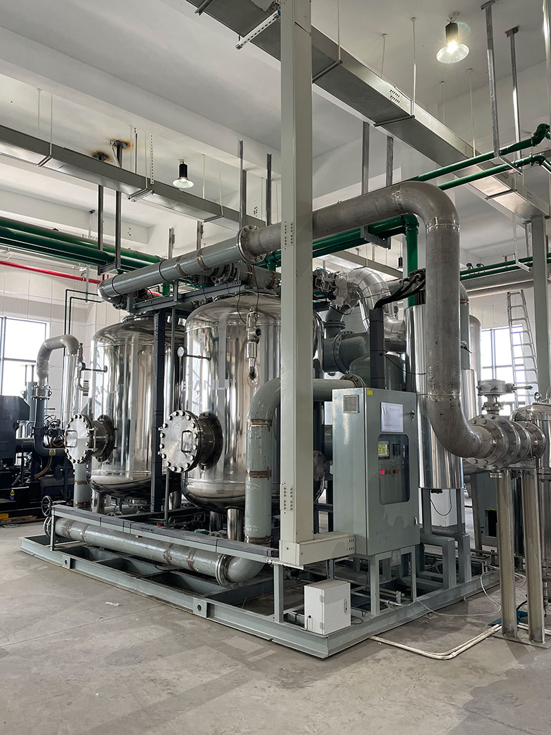此项目起始于2021年,公司领导对项目非标重视,要求各部门全力配合。通过和客户的多次技术交流,根据客户的空压机情况,确定选用目前压缩空气净化行业节能的零气耗机型,包含零气耗鼓风热再生吸干机和零气耗压缩热再生吸干机。针对客户要求设备不含铜铁锌等金属材质,该项目全部设备采用不锈钢材质,各零部件都做了特殊处理,全面达到了客户的使用要求。