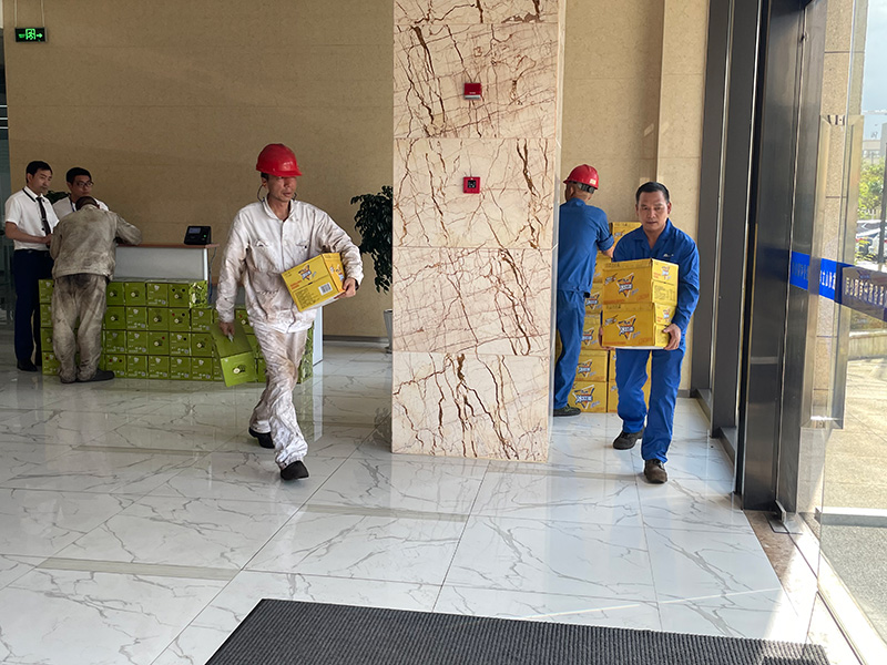为此,7月22日下午,杭州yl23411永利官网登录净化设备股份有限公司总务部成立了“送清凉小组”,开展了“高温慰问 情系一线职工”送清凉活动,对公司厂区内一线员工送去慰问品和公司的关爱。