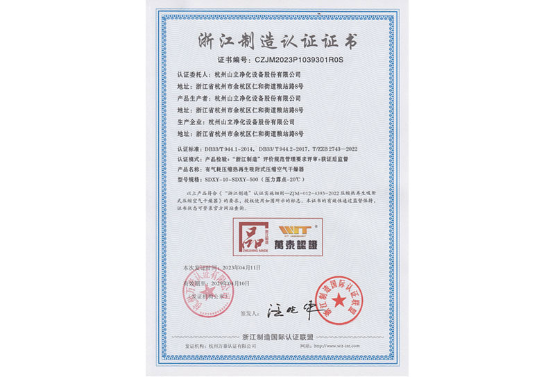 2023年4月,杭州yl23411永利官网登录成功获得浙江制造认证证书,此次认证通过,是对杭州yl23411永利官网登录产品质量的肯定。